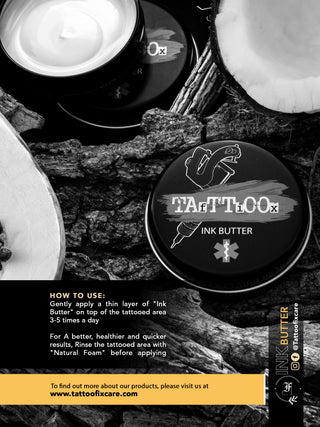 Осторожно нанесите тонкий слой «Ink Butter» на область татуировки 3-5 раз в день